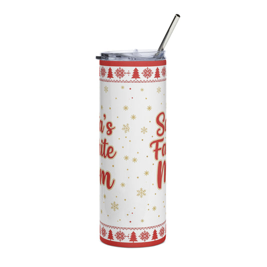 Santa’s Favorite Mom – 20 oz Stainless Steel Tumbler with Straw | Holiday Gift for Moms