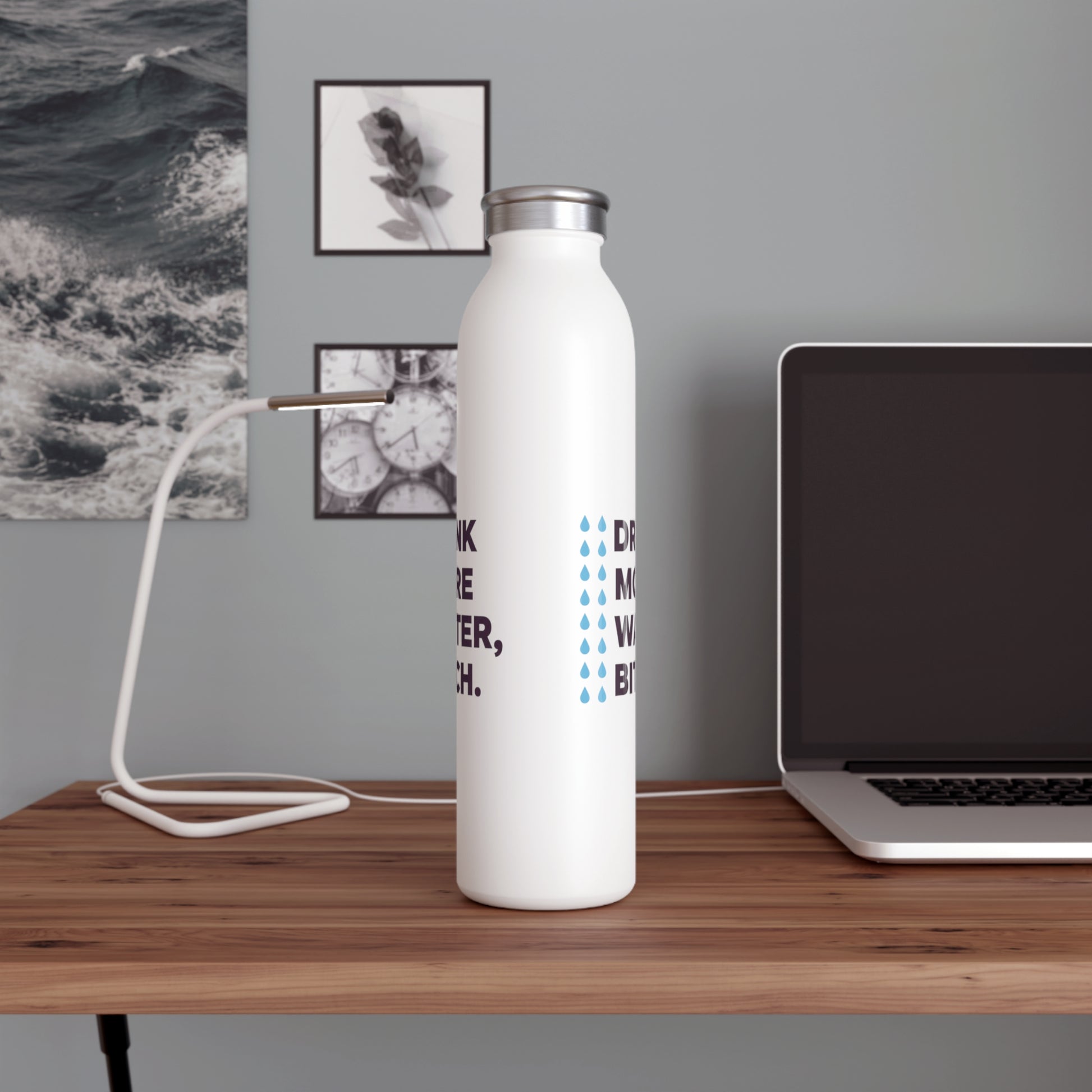 Drink More Water, Bitch – Slim Stainless Steel Water Bottle | Funny Motivational Hydration Gift